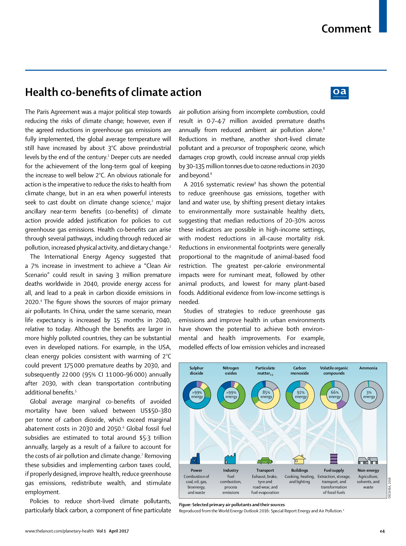 Haines, A. (2017). Health co-benefits of climate action. The Lancet Planetary Health, 1(1), e4-e5.